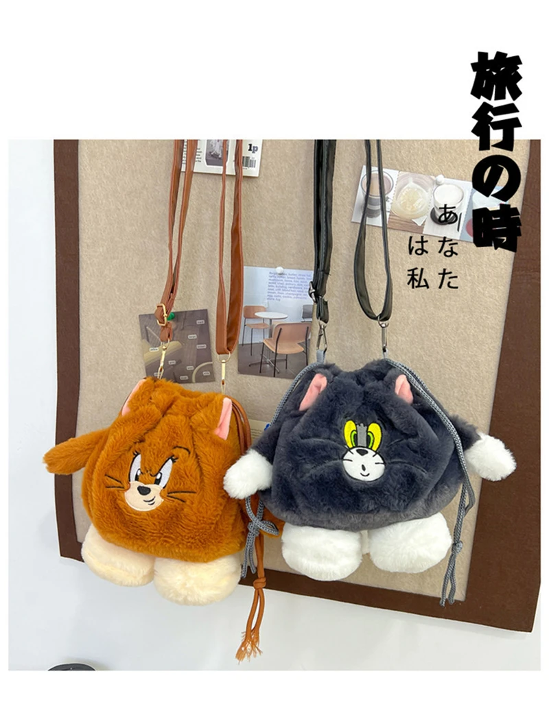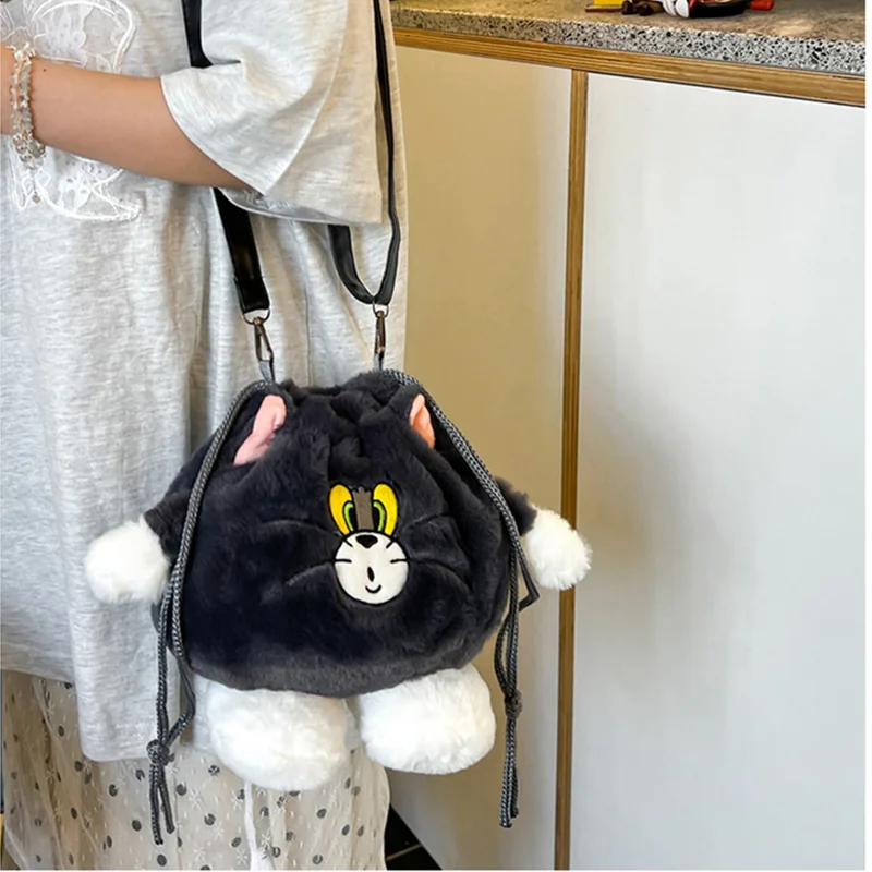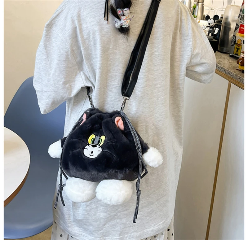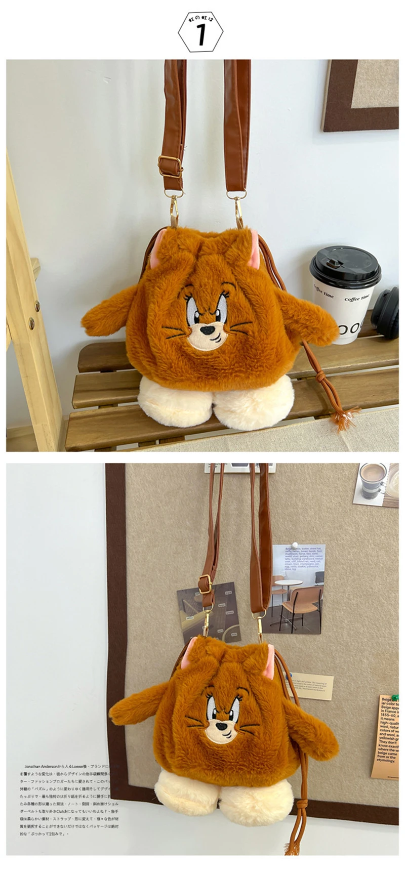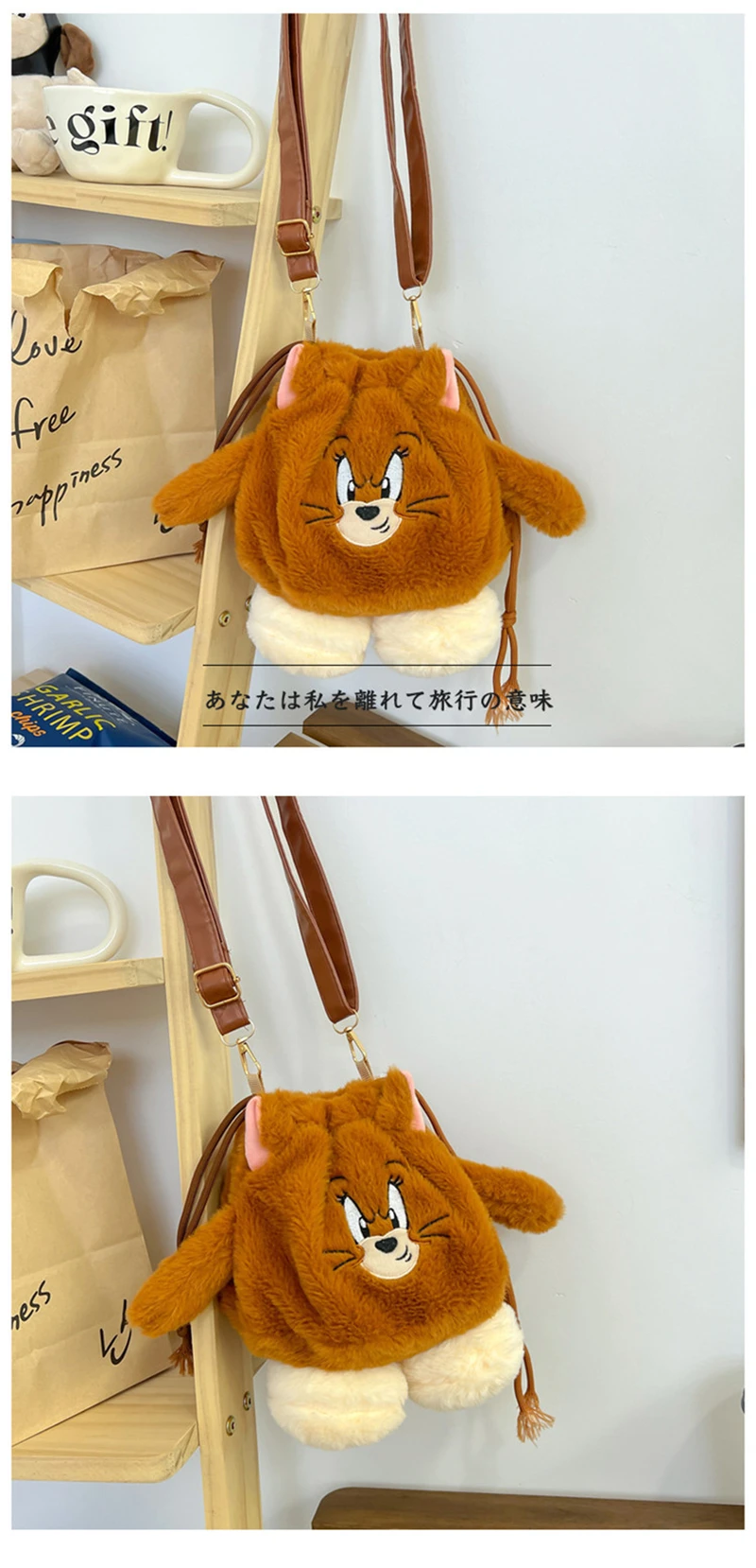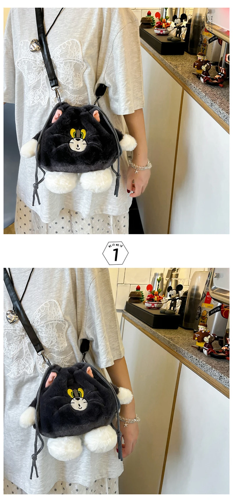 Cute Personality Drawstring Plush Bag Autumn Handbag Cartoon Doll Single Shoulder Bag Girl Storage Small Bag