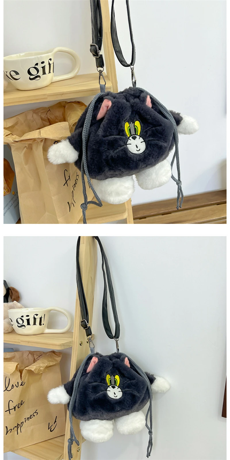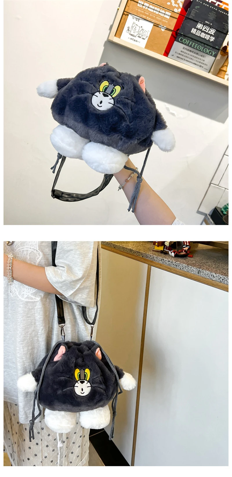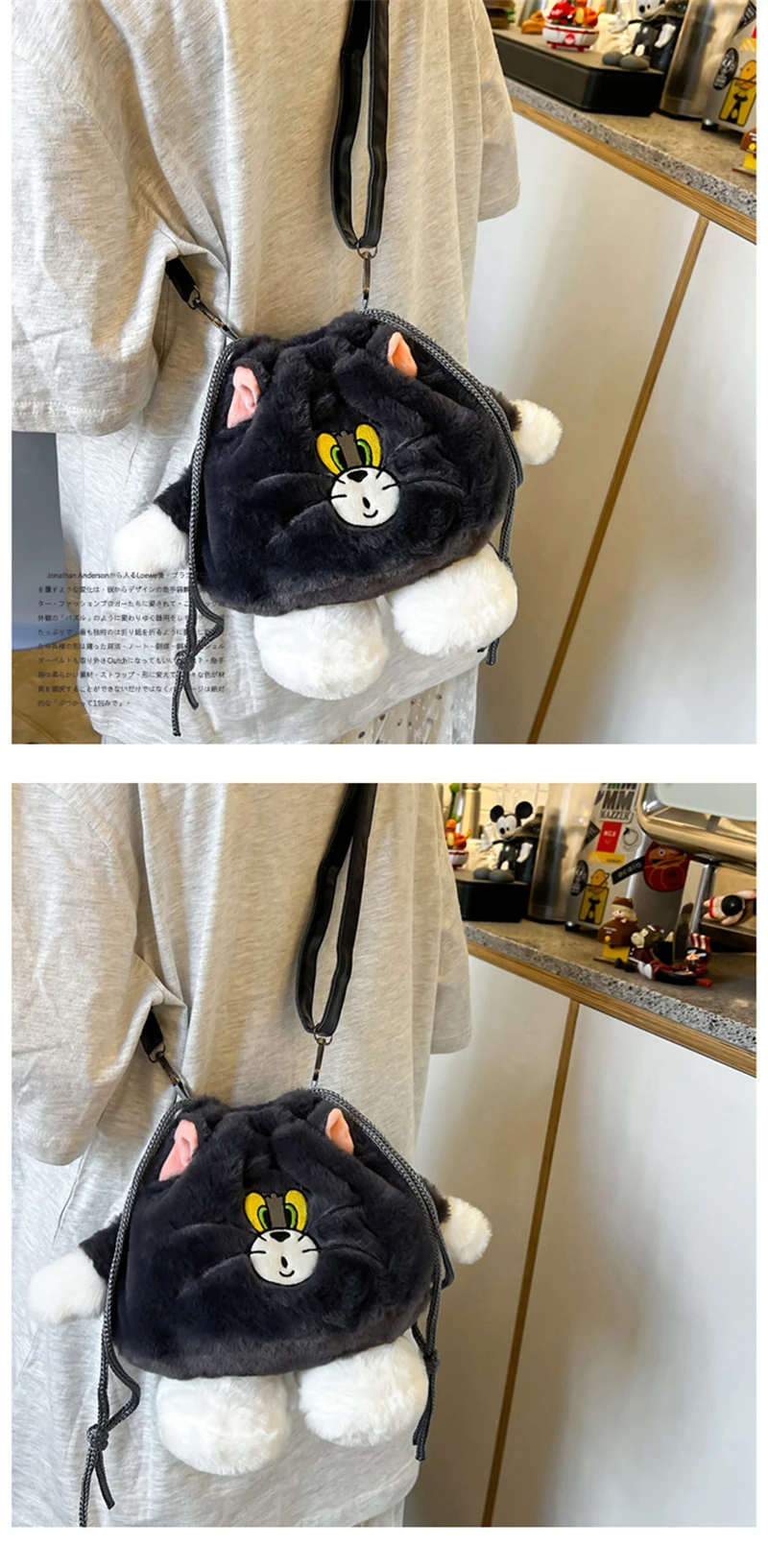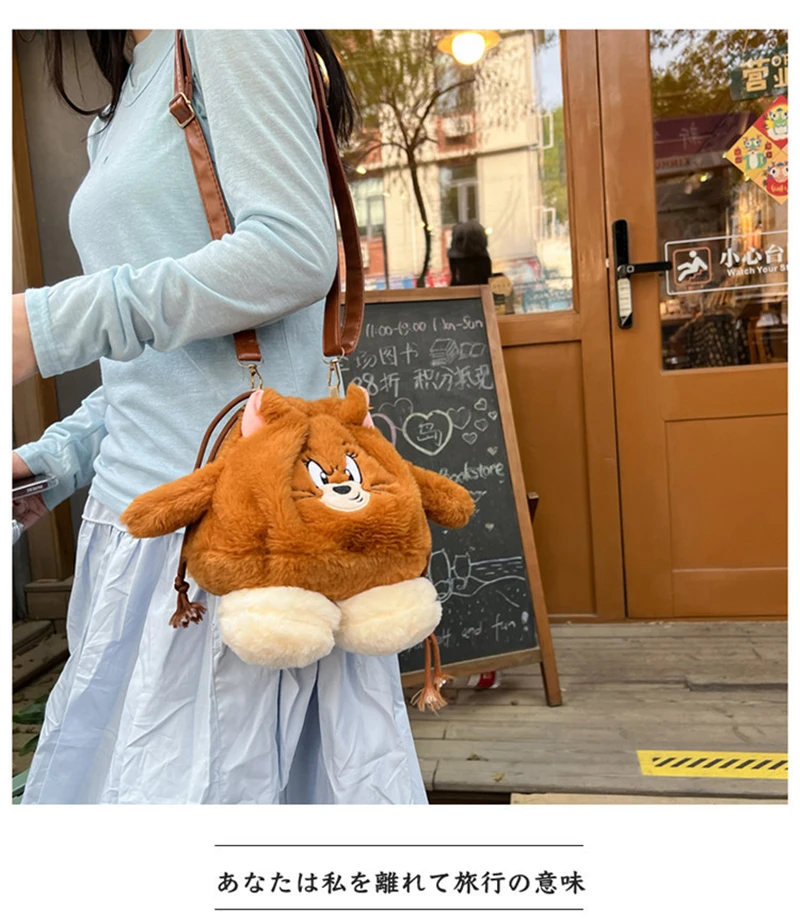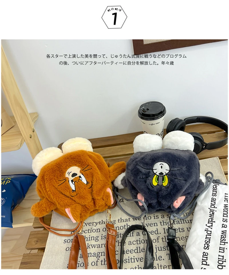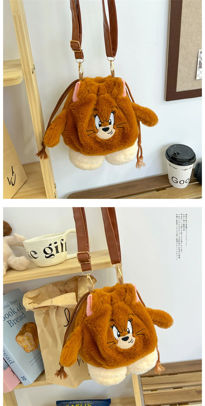 Cute Personality Drawstring Plush Bag Autumn Handbag Cartoon Doll Single Shoulder Bag Girl Storage Small Bag